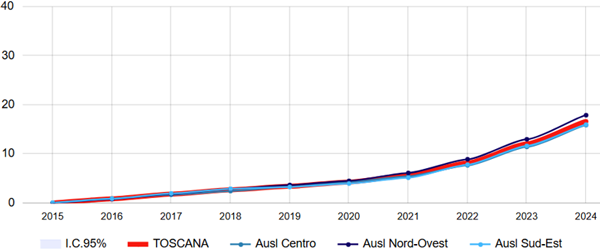 Fonte: RT Anagrafe assistibili Toscana, ARS Banca dati Malattie croniche (MaCro)