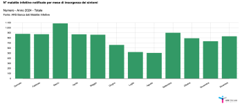 Nel portale è possibile selezionare la patologia di proprio interesse, per verificarne l’andamento nel tempo e la diversa incidenza per genere ed età. Complessivamente, rispetto alla popolazione residente, nel 2024 le notifiche rilevate sono state 261 ogni 100mila abitanti (dai 202 per 100mila dell’anno precedente e i 126 per 100mila del 2019) e si conferma il maggior rischio per la popolazione maschile rispetto a quella femminile, con 5.312 casi notificati tra gli uomini (298 ogni 100mila abitanti) e 4.206 tra le donne (224 per 100mila).